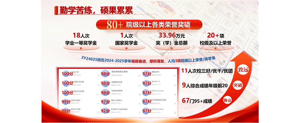 SY24025班在过去一年中以“为国而生、与国同行,做敢为人先、报效祖国的电子人”为目标,全面发展并取得突出成效。