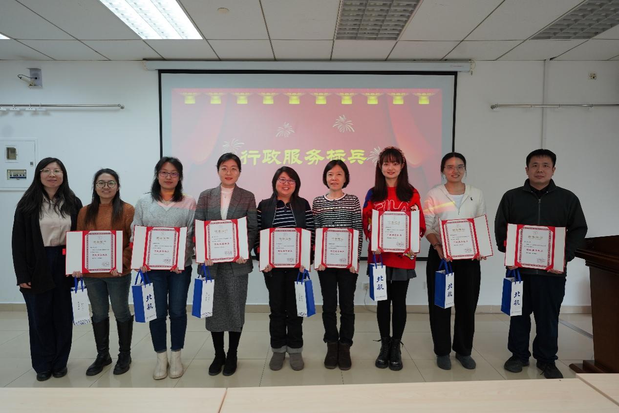 学院领导为本科教学标兵、研究生教学标兵、科研工作标兵、国际化工作标兵、行政服务标兵、保密安全标兵、本研辅导员标兵、学生科创指导教师颁奖。