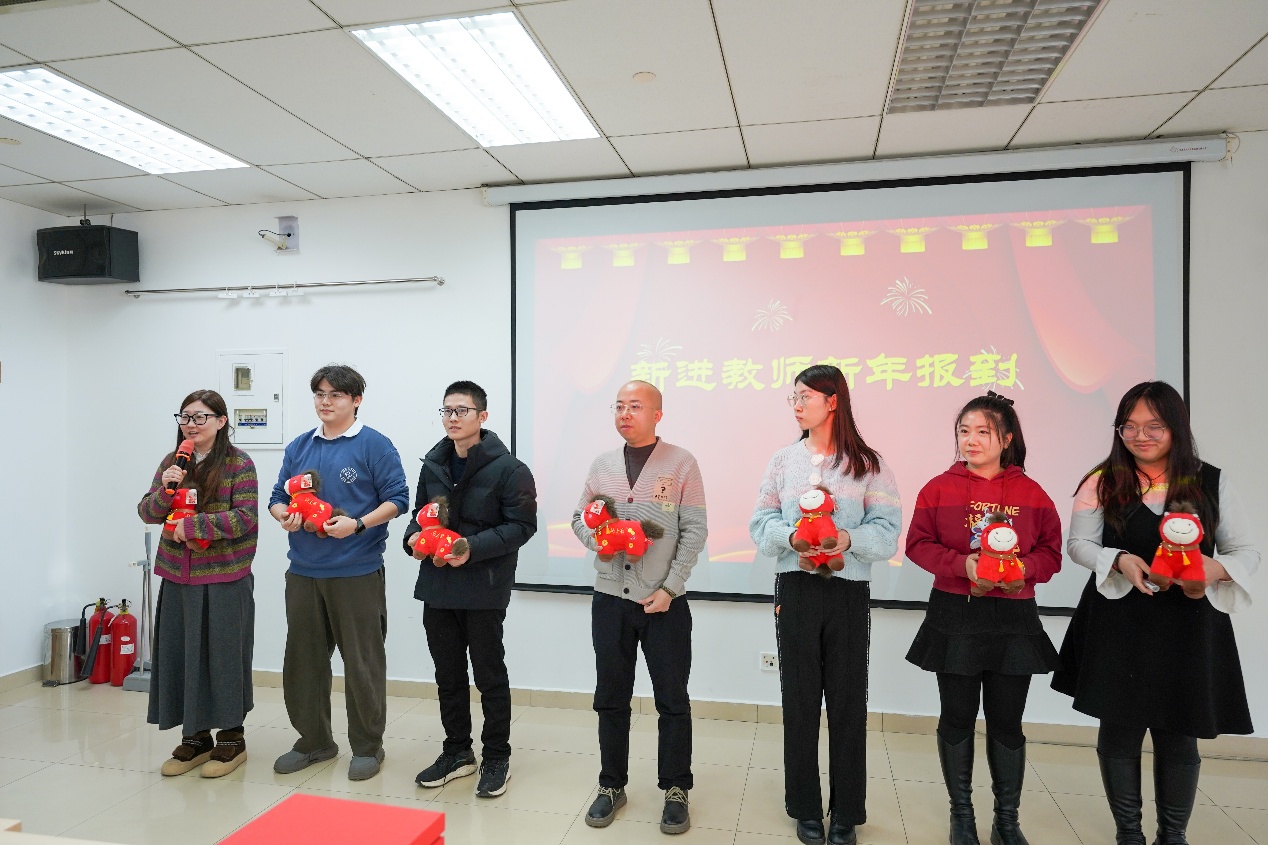 2025年度新进教师发言,王嘉琪、冯馨月、刘巧梅、刘清涛、杨燕、李庆超、陈航、高硕彦、郭佳伟、蔡少雄进行自我介绍,并表示将做好自己的本职工作,在科研创新、教学育人、行政工作等方面为学院师生服务。