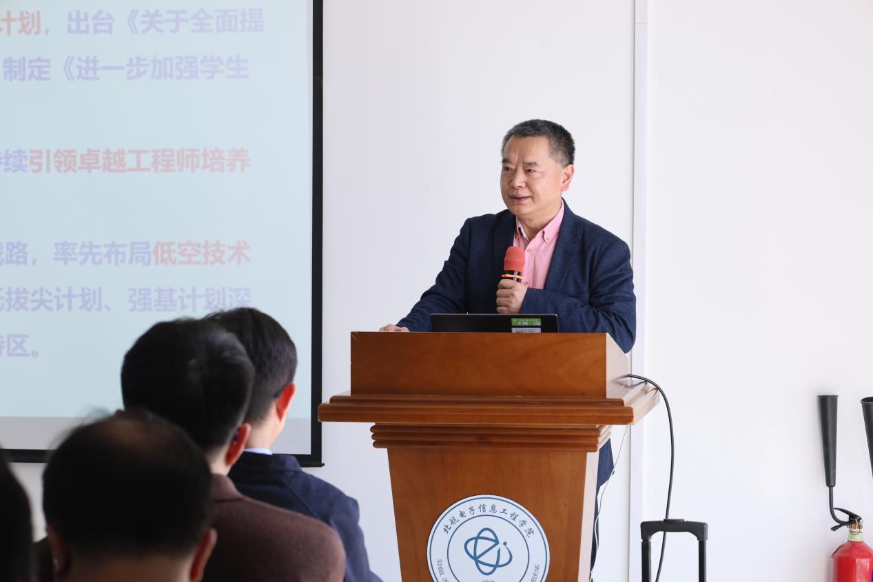 院长曹先彬做题为《对标一流 深化改革 电子信息工程学院锚定学校蓝图扎实发展》的报告,详细传达了学校2026年度工作会会议精神,并就学院2026年重点工作做出部署。2026年是“十五五”规划开局之年,也是学校“深化改革年”。学院要坚决贯彻落实学校决策部署,紧紧围绕学校中心工作,扎实推进各项任务落实。他明确了学院“十五五”发展目标,强调要强化学科交叉创新,打造学科集成示范平台,持续加强基础研究以提升科研创新能力,夯实本研基层教学,优化人才培养体系,建强智库并做好专业分流工作,加强师资队伍建设,提升国际化办学水平,筑牢风险防控底线。他要求全院教职工凝心聚力,以扎实举措推动学院事业实现新突破。