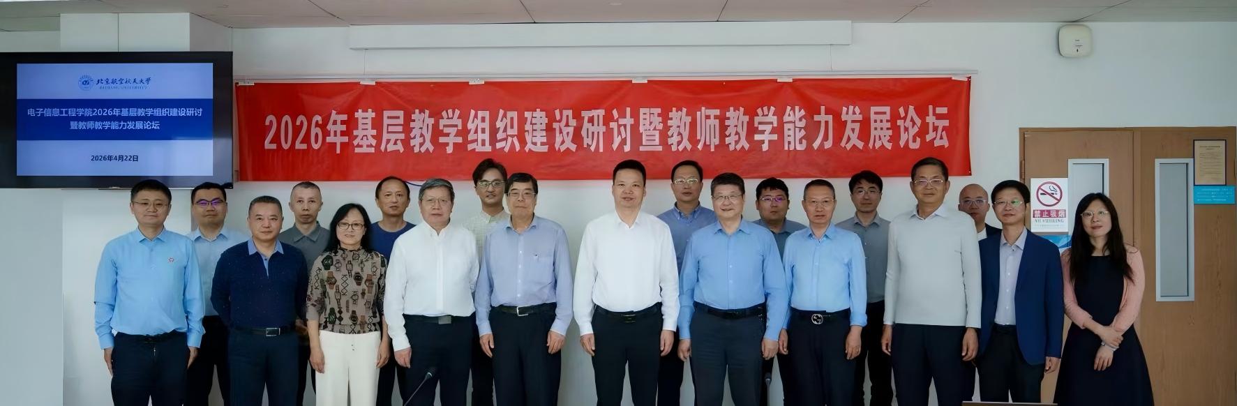 电子信息工程学院2026年基层教学组织建设研讨暨教师教学能力发展论坛于4月22日下午在新主楼F706举行。校教务部部长钱政、校教学指导委员会专家樊尚春、郭卫东、杨超、王祖林、徐斌、胡晓光、学院党委书记戴飞、院长曹先彬、本科教学副院长徐迈、研究生教学副院长路辉、学院部分名师培育计划在培教师以及青年教师参加了会议。会议由徐迈主持。